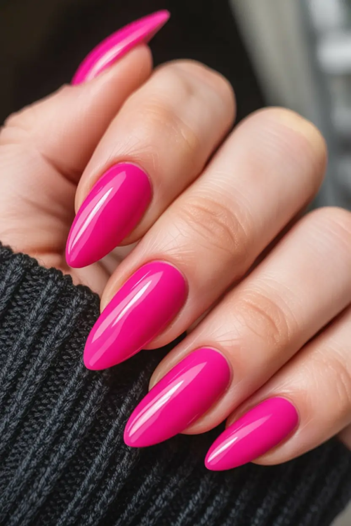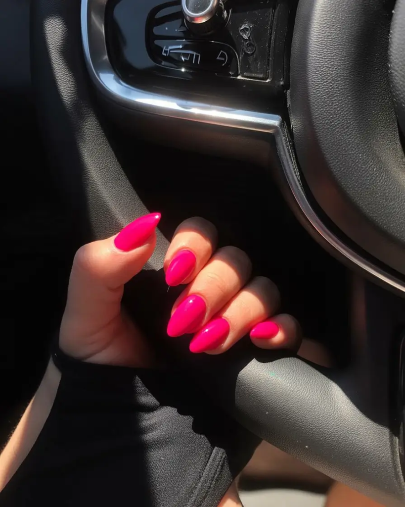 Vivid Hot Pink Almond Nails for a Bold Everyday Style