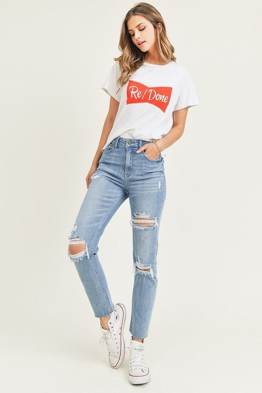 This outfit feels modern and clean. A cropped tee with jeans creates a balanced look.