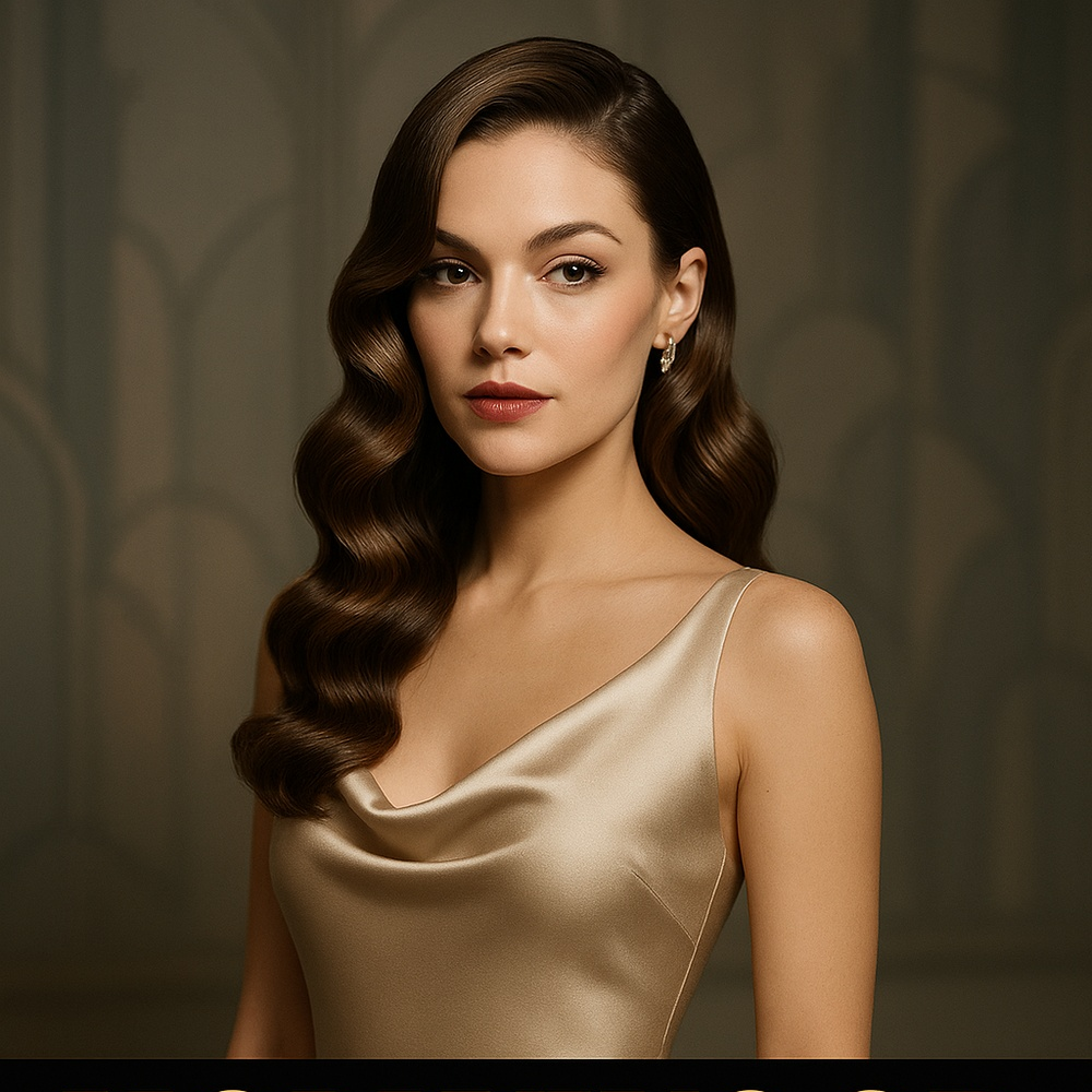 Inspired by classic film-era glamour, this look uses structured waves and a deep side part to create dramatic shape. The waves are brushed into smooth curves that fall elegantly across the face. Styling products keep the hair sleek and help maintain the defined pattern. The hairstyle enhances the face shape and pairs well with elegant clothing. It captures a timeless feeling while still appearing polished for modern events.