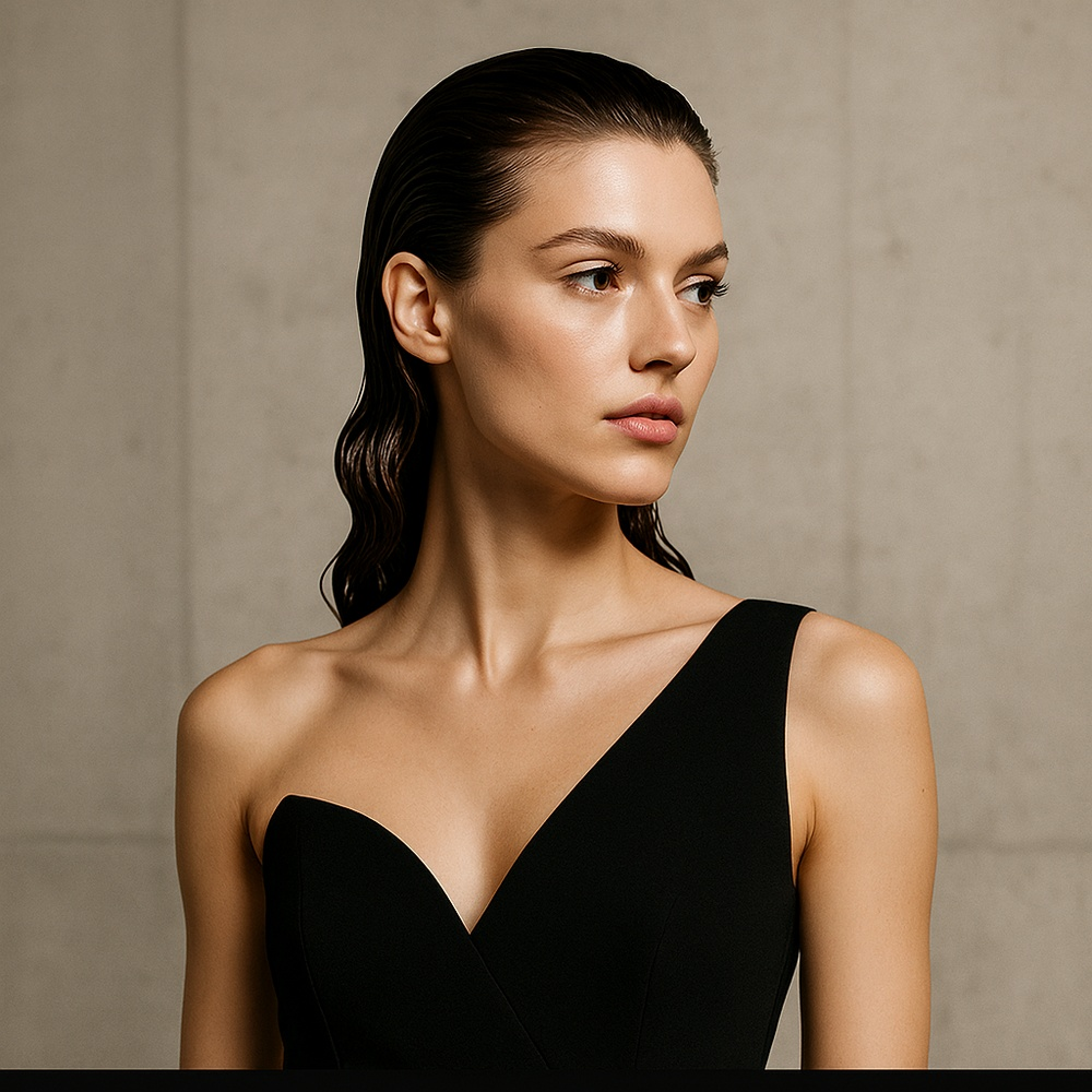 In this style, loose waves are gathered to one side to create a dramatic flow over the shoulder. A thin braid runs across the head and blends into the waves, adding subtle detail without overpowering the look. Texture spray gives the hair volume and helps hold the shape, while shine spray keeps the strands looking smooth. The hairstyle frames the face softly and works well for romantic occasions. It brings together bohemian elements and elegant styling.