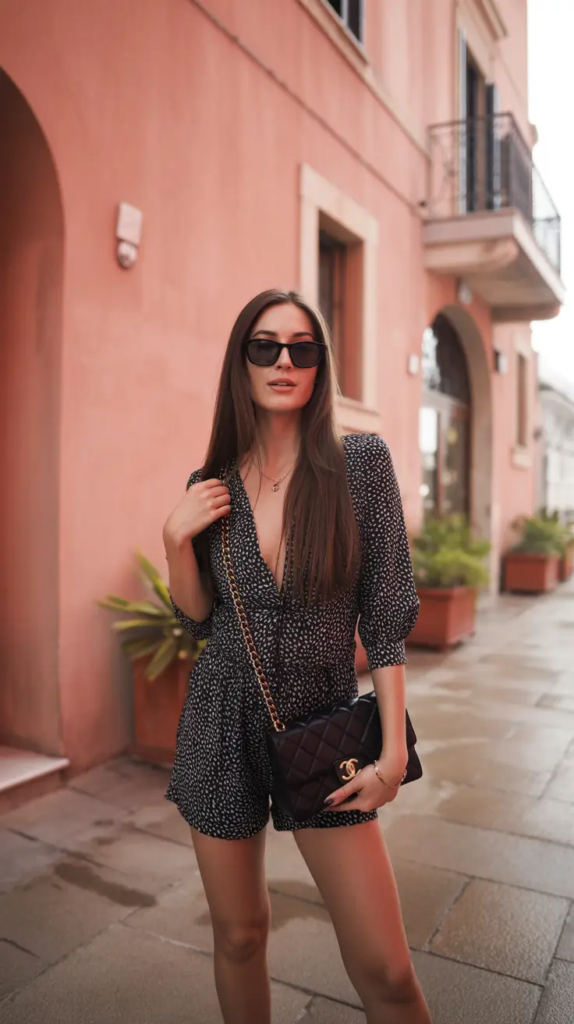 A light romper is a great option for warm early-spring destinations. Its relaxed fit and playful design make it comfortable for daytime exploring.