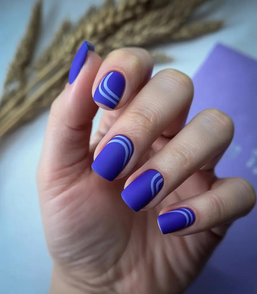 This look feels calm and balanced. I usually go for matte purple when I want something simple but not boring. The thin curved lines add just enough detail.