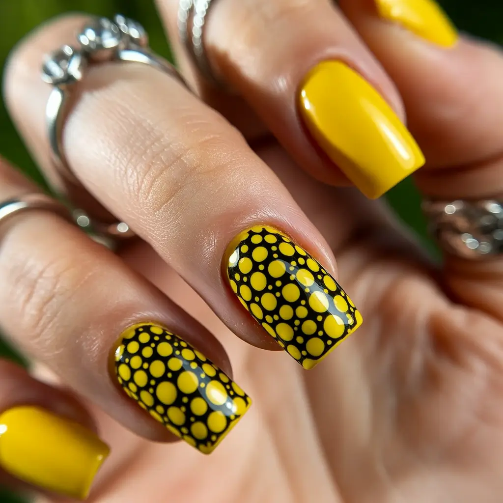 This is one of those designs that instantly lifts my mood. Bright yellow with black dots feels playful and bold at the same time.