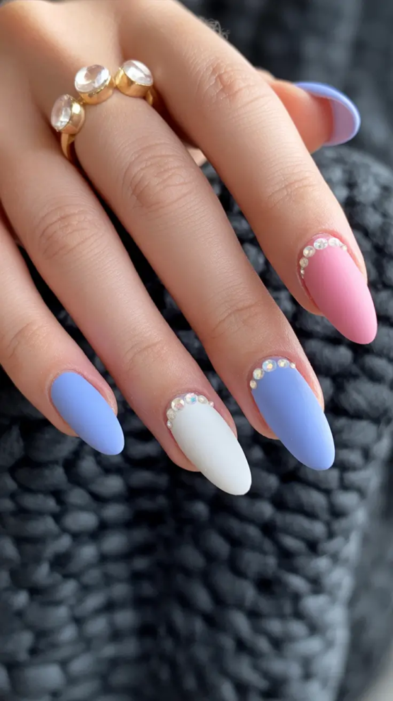 This is a balanced mix of classic and modern. Each nail can have a different pastel tip.