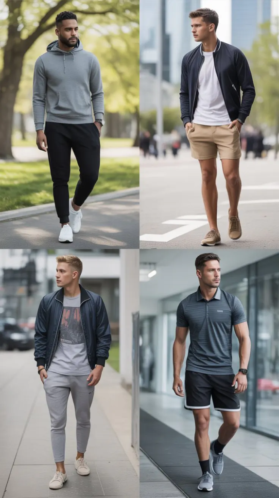 Graphic tees show style preferences, while joggers keep things flexible. Sneakers and a cap add a sporty edge.