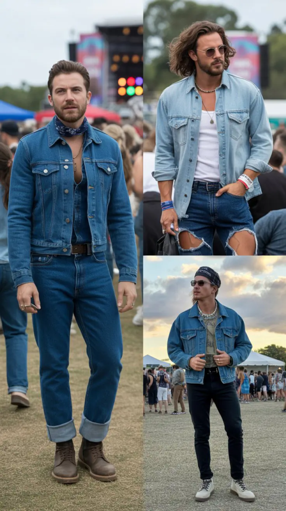 A denim jacket adds character, while chinos or black jeans create contrast. Keeping the inner layer simple works best.