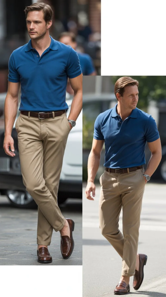 A polo shirt feels breathable, and chinos give a more refined look than jeans. Together, they create a balanced style.