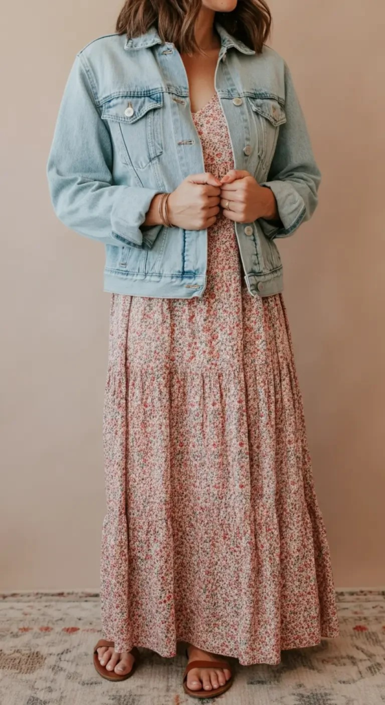 Tiered Maxi Dress with Denim Jacket