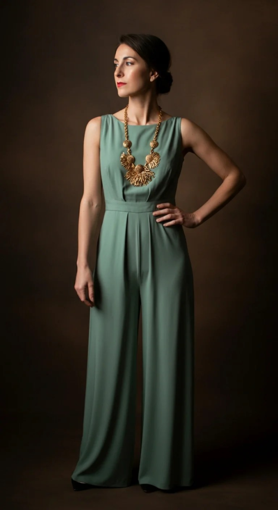 Palazzo Jumpsuit with Statement Necklace