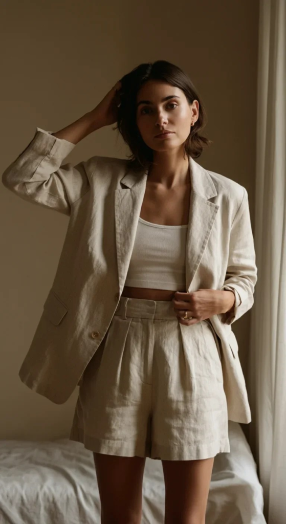 Cropped Linen Blazer and High-Waisted Shorts