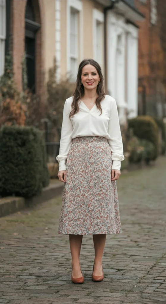 A-Line Midi Skirt with Tucked Blouse