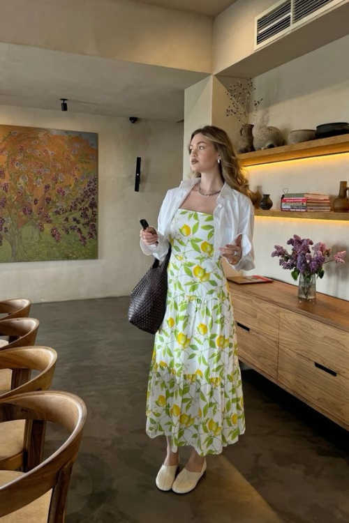 2. Cropped Shirt Layered Over Summery Maxi Dress