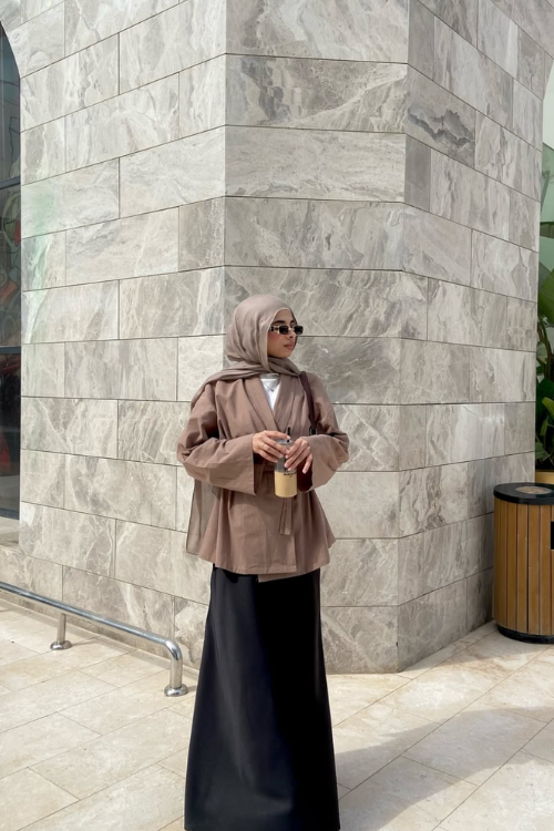 For dressier days, I go for a lightweight blazer over a maxi skirt. It gives structure while still keeping the look modest and elegant.
