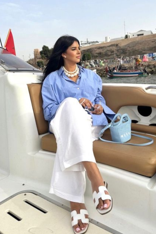 A white blazer set always looks fresh and clean. I go for lightweight fabric so it doesn’t feel too heavy in summer.