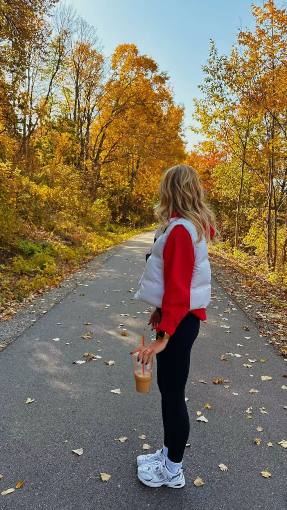 Fall is my favorite season for walking because outfits feel naturally better. I go for warm tones, soft knits, and layered pieces that keep me cozy. This balance between warmth and movement makes longer walks more enjoyable.