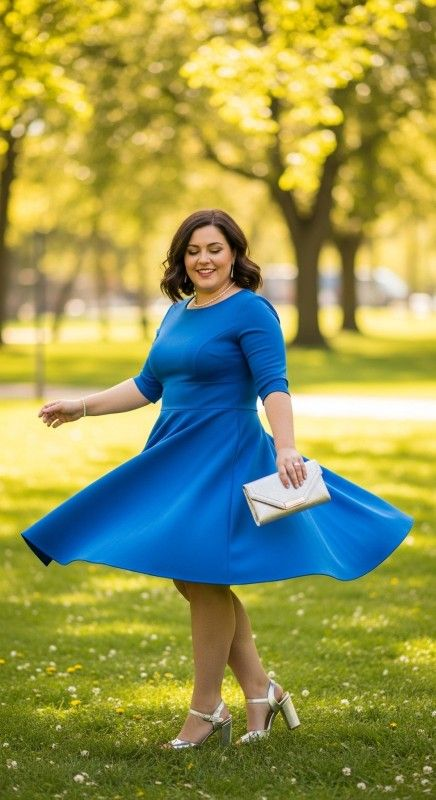 Fit-and-flare shapes define the waist and flow over hips. Electric blue stands out without needing heavy accessories.