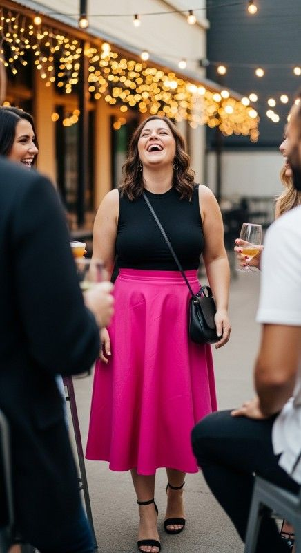7. Hot Pink A-Line Skirt with Black Fitted Top