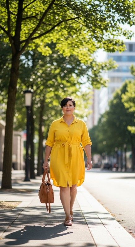 Shirt dresses are practical and easy to wear. Adding a belt creates shape without discomfort.