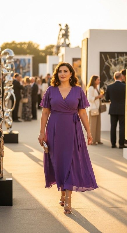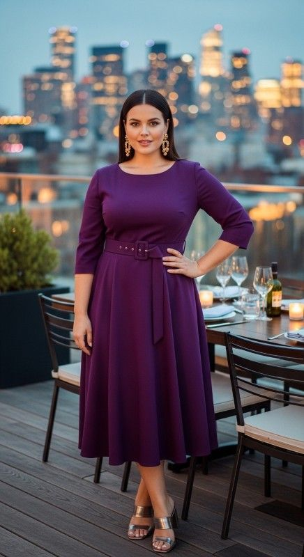Plum is a deeper shade that works well for evening events. The belt adds structure.