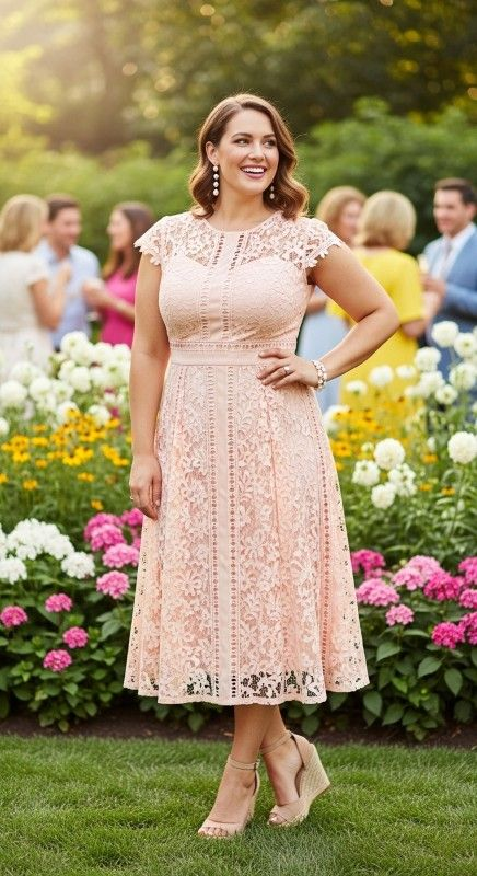 Peach tones are softer but still vibrant. Lace adds texture without heaviness.