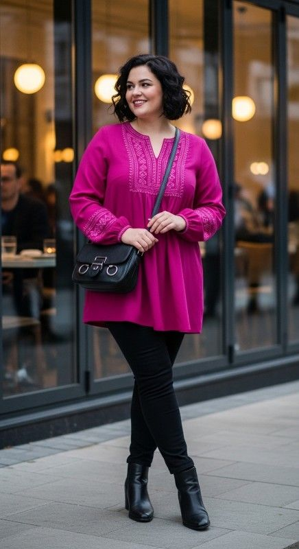 Tunic tops offer coverage while still feeling airy. Pairing with darker bottoms keeps the outfit balanced and clean.