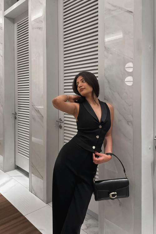 This look highlights how a matching black set can feel simple yet powerful, offering a clean and professional appearance that works without overthinking.