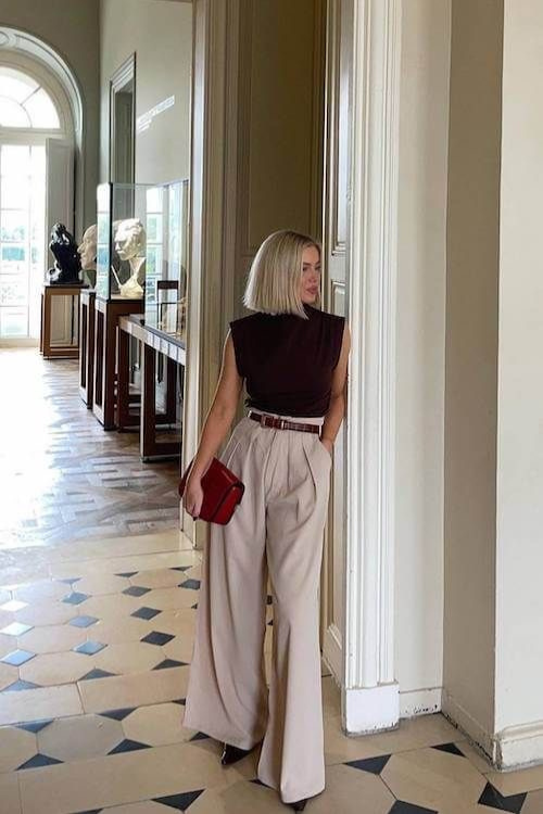 5. elegant top + pleated pants