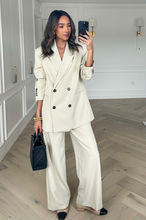 This outfit shows how relaxed tailoring can still feel appropriate for work without looking stiff.