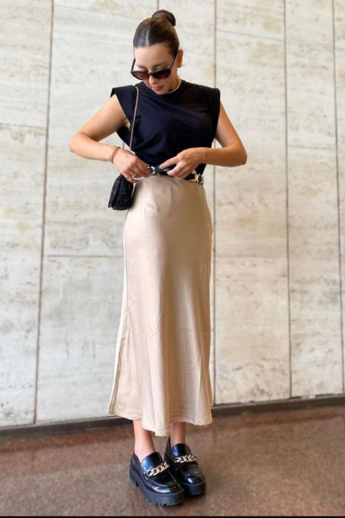 23. basic top + satin skirt
