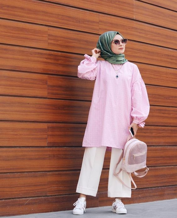 I like wearing soft pastel tones because they feel calm and easy on the eyes. A tunic with trousers and matching sneakers creates a clean and balanced look.