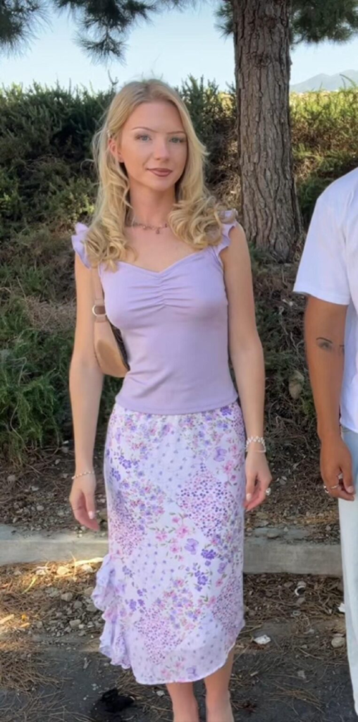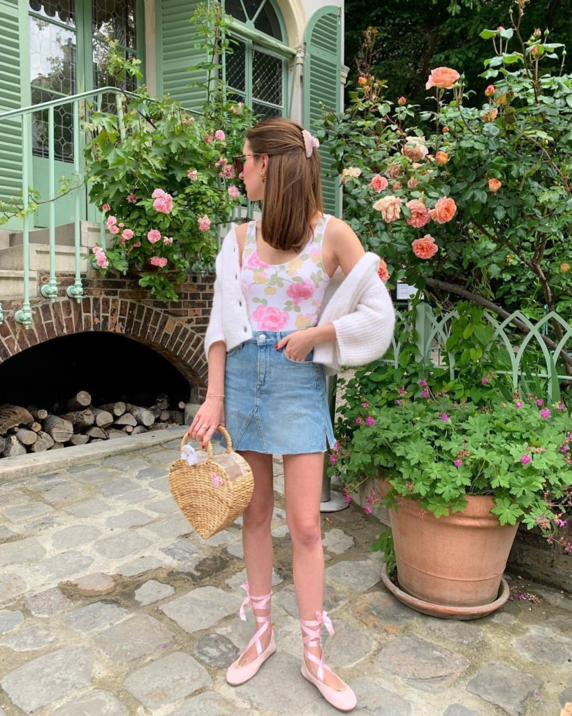 The floral skirt gives this outfit a soft and dreamy feel that fits perfectly into the theme. A simple cami keeps it clean and balanced. I like how layering options make it easy to wear throughout the day.