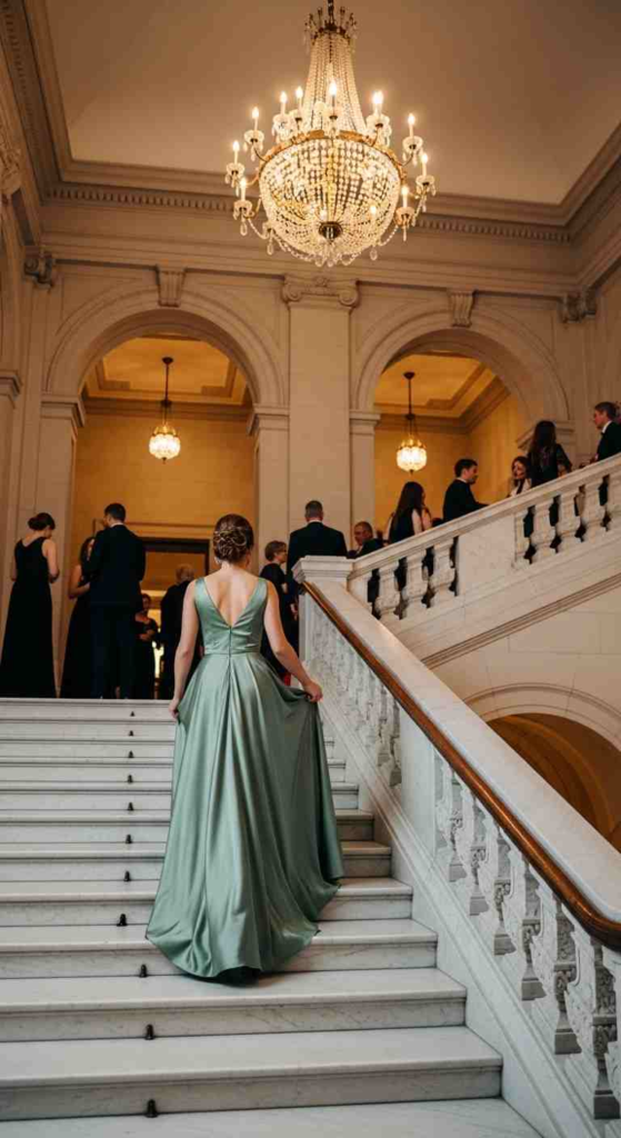 Spring gala dressing in 2026 is all about lighter fabrics, clean silhouettes, and refined color palettes like sage green, champagne, navy, blush, and metallics. These looks are designed for comfort, camera-ready styling, and formal event etiquette.
