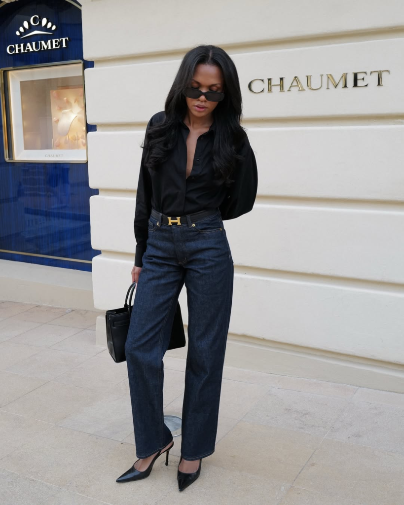 This combination gives denim a powerful and confident edge. Heels add height and polish, while the blazer brings authority to the look. Together, they turn casual jeans into a statement outfit. It’s practical, refined, and quietly commanding.