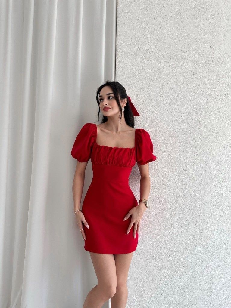 A crimson mini dress with a square neckline and soft short sleeves delivers a bold finish to summer birthday outfit ideas. The feminine shape highlights the silhouette while still feeling comfortable enough for a party setting. A matching hair bow introduces a playful detail that makes the outfit memorable. Paired with simple gold jewelry and a sleek hairstyle, the dress becomes the clear statement piece for a sunset celebration.