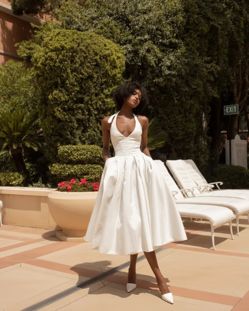 14. White Halter Midi with Old-Hollywood Grace