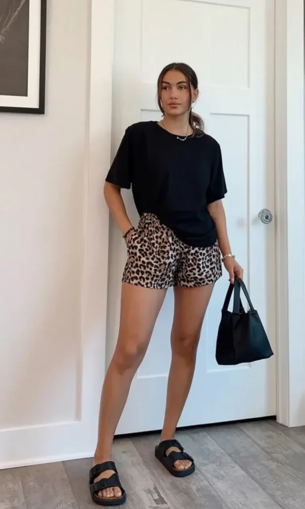 19. Black Tee and Leopard Shorts Combo