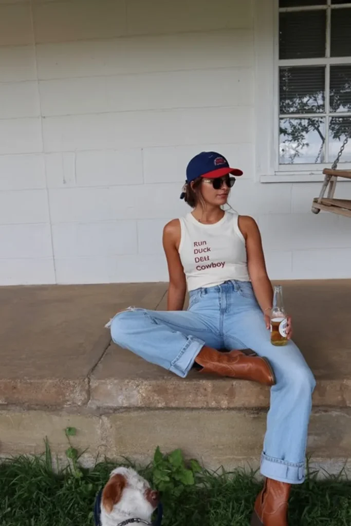 20. Graphic Tank, Jeans, and Western Boots