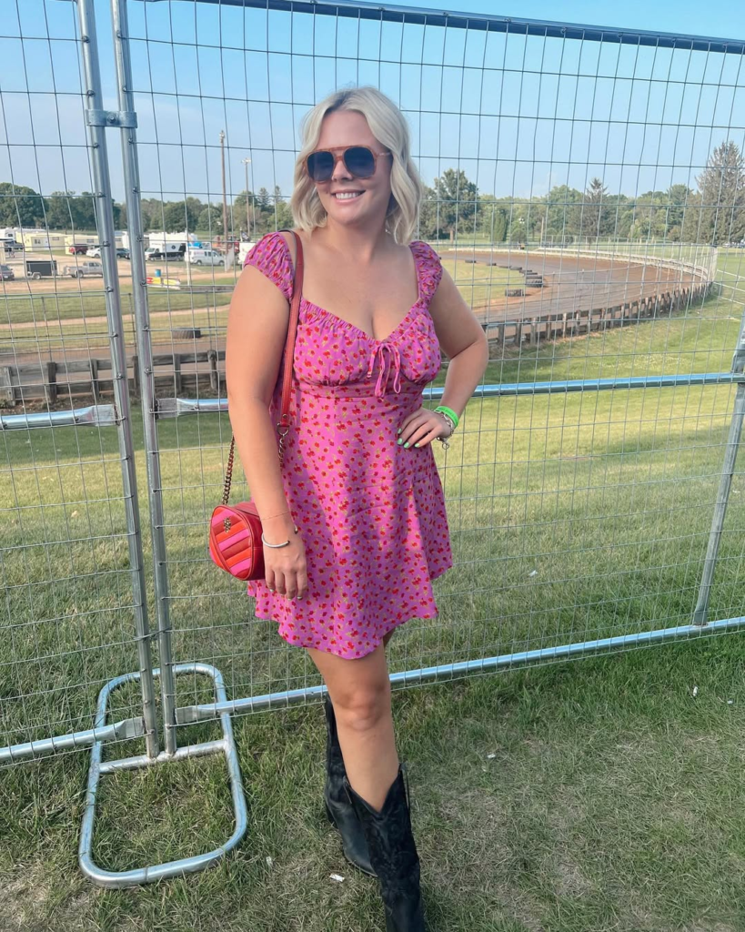 A vibrant pink mini dress instantly lifts my mood at country or festival shows. Cowboy boots are essential—they’re durable and add that western flair. I often throw on a denim jacket if it gets cooler. The combination is playful, easy to move in, and perfect for outdoor venues.