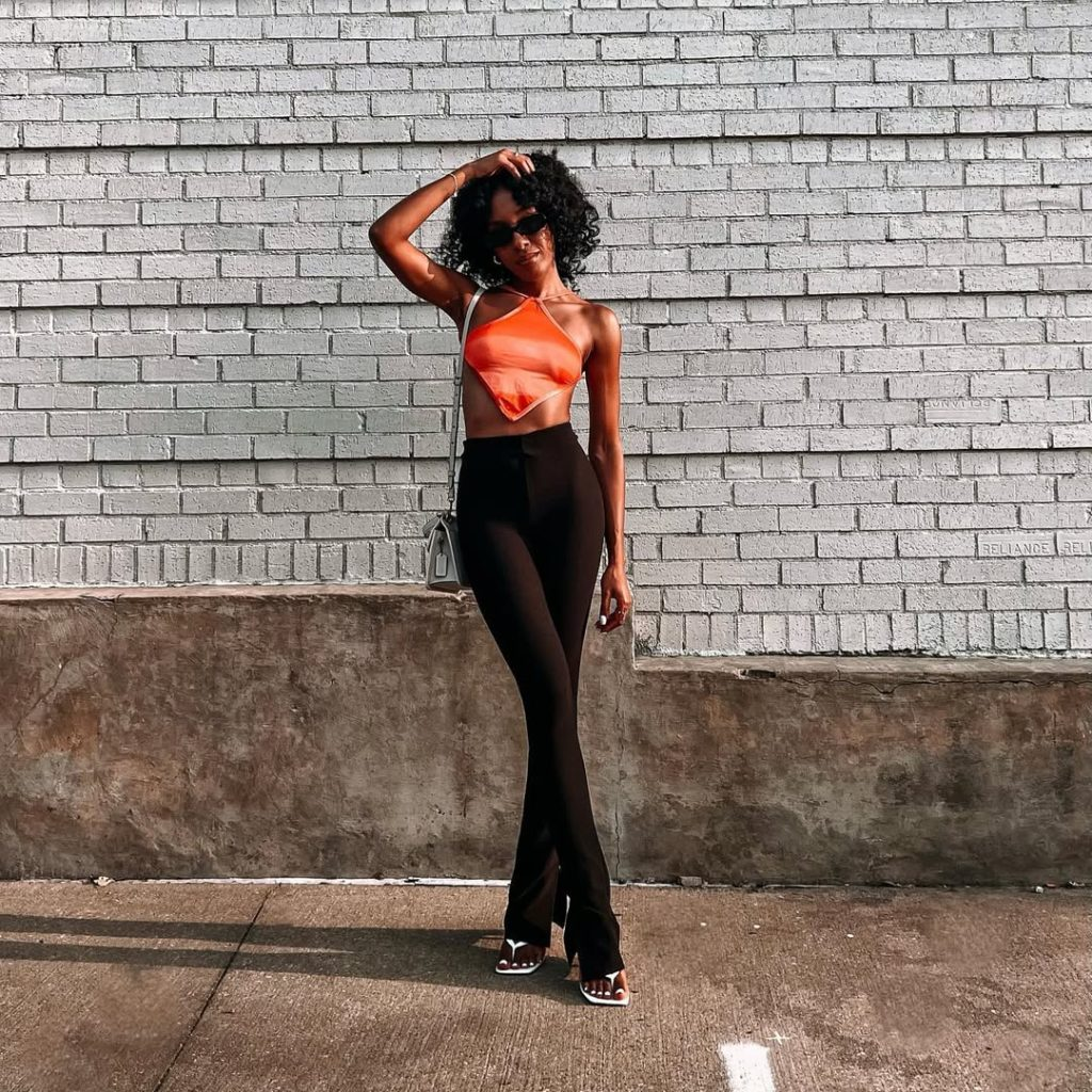 A black corset crop top with a denim mini and moto jacket gives street-style energy. I love this for festivals because it blends boldness with comfort. Removing the jacket in hot moments keeps it wearable.