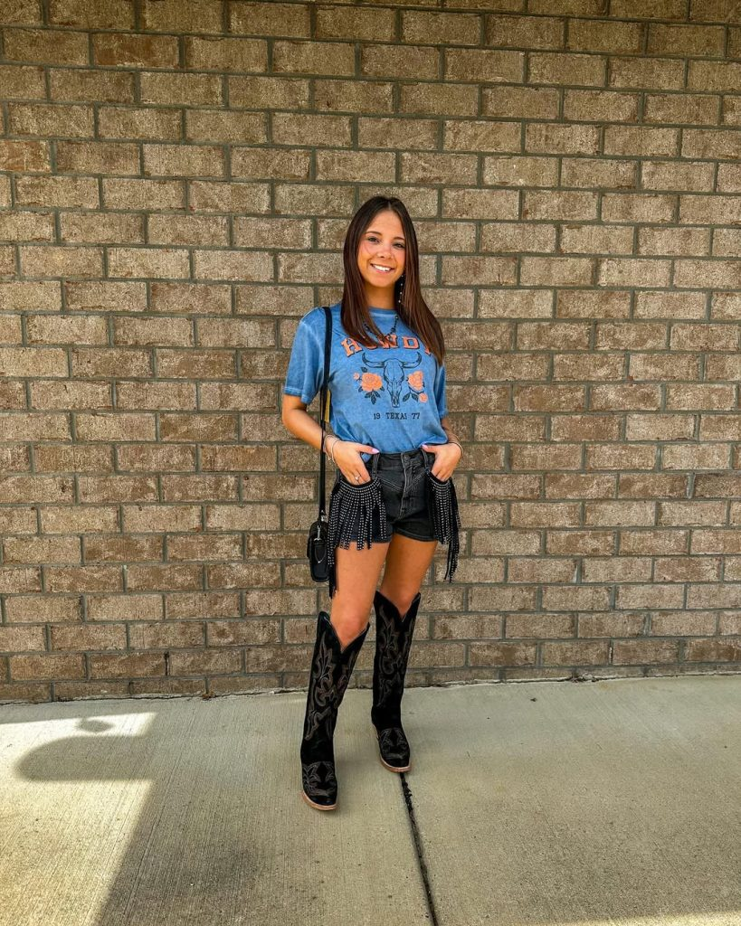 Graphic tees paired with fringe shorts and cowboy boots are my favorite for casual outdoor country shows. They’re practical, fun, and allow freedom of movement. Adding a denim jacket or statement belt can elevate the look while staying true to country style.