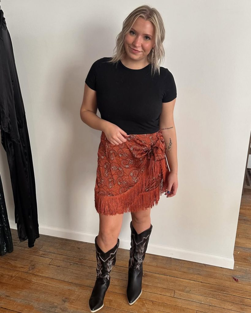 3. Fringe Skirt Concert Outfit for Night Shows