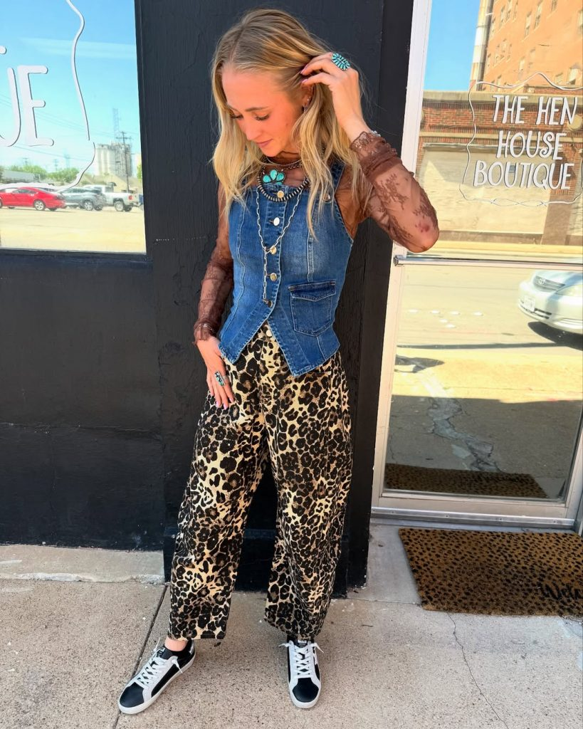 Leopard print pants and denim vests feel adventurous for daytime festivals. Layered necklaces or a light hat add personality. Comfort is key for walking between stages while staying stylish.