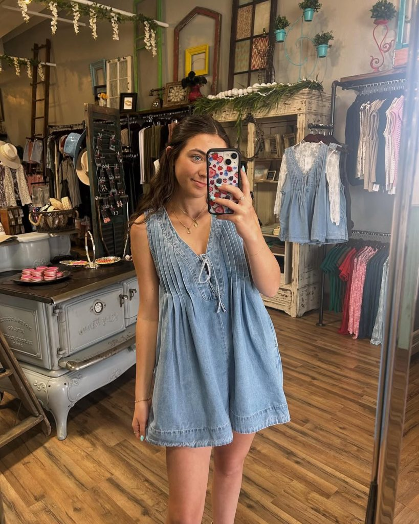 Denim babydoll dresses are my go-to for casual, daytime concerts. Light sandals or sneakers keep it breathable and comfortable. Minimal gold jewelry adds subtle elegance without overdoing it.