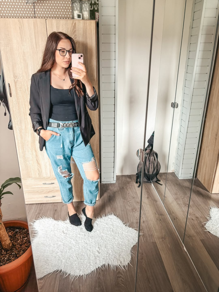 Black blazers with distressed denim make me feel effortlessly cool. Sneakers or ankle boots keep it comfortable, while the blazer adds polish for casual concerts or post-work events.