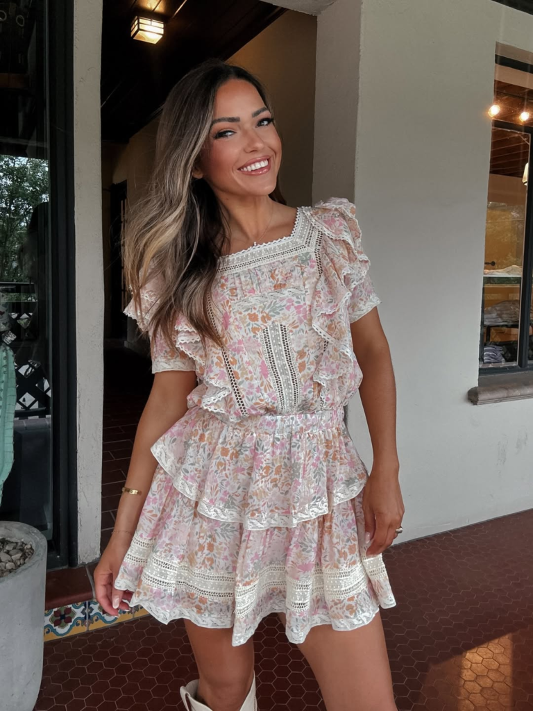 Floral ruffle dresses feel dreamy and perfect for sunset concerts. Light boots or minimal bracelets enhance the look while keeping it soft and flowing for summer breezes.