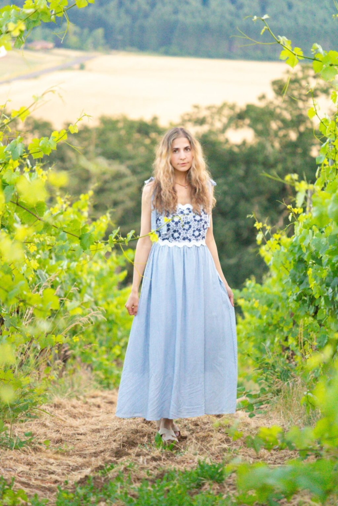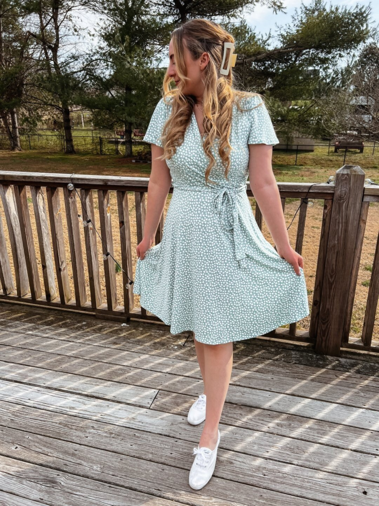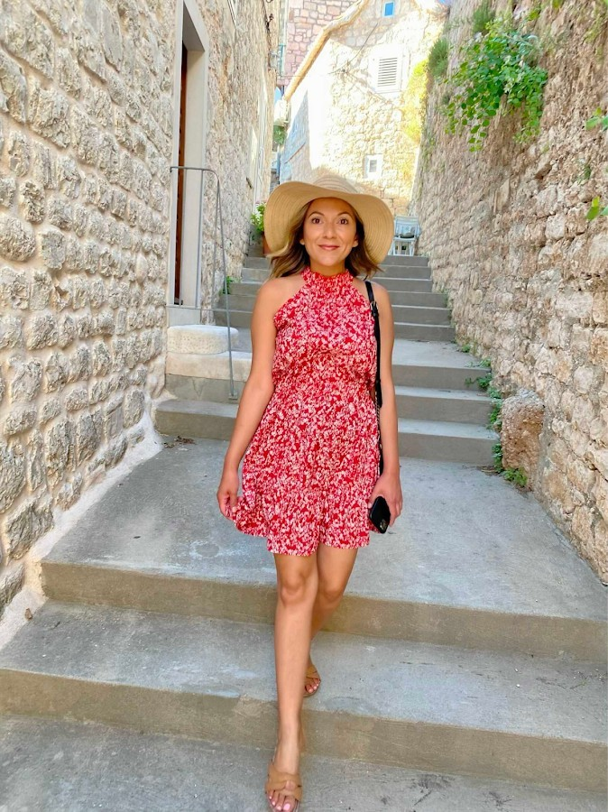 I keep accessories minimal here. Letting the dress stand out makes the whole look feel more balanced and not overdone.