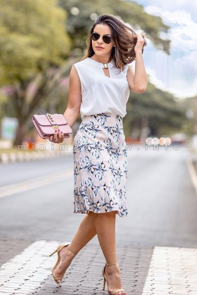 A white top with a red floral skirt creates a fresh and balanced summer look. It feels light, easy, and still appropriate for the office. These Summer work outfits also transition well after work, which makes them even more practical.