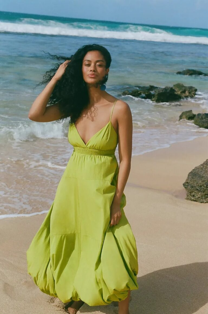 I use bold colors like neon when I want a standout beach look. A simple slip dress in a bright shade is enough on its own.
