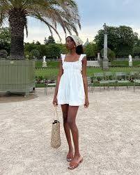 Off-shoulder dresses are my shortcut to an effortless summer look. A simple white mini dress always feels fresh.
