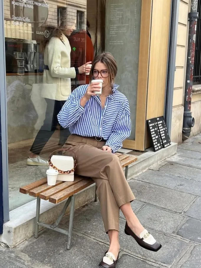 I finish it with loafers and a structured bag for a polished effect. It’s simple, but it gives that effortless “put together” feeling.